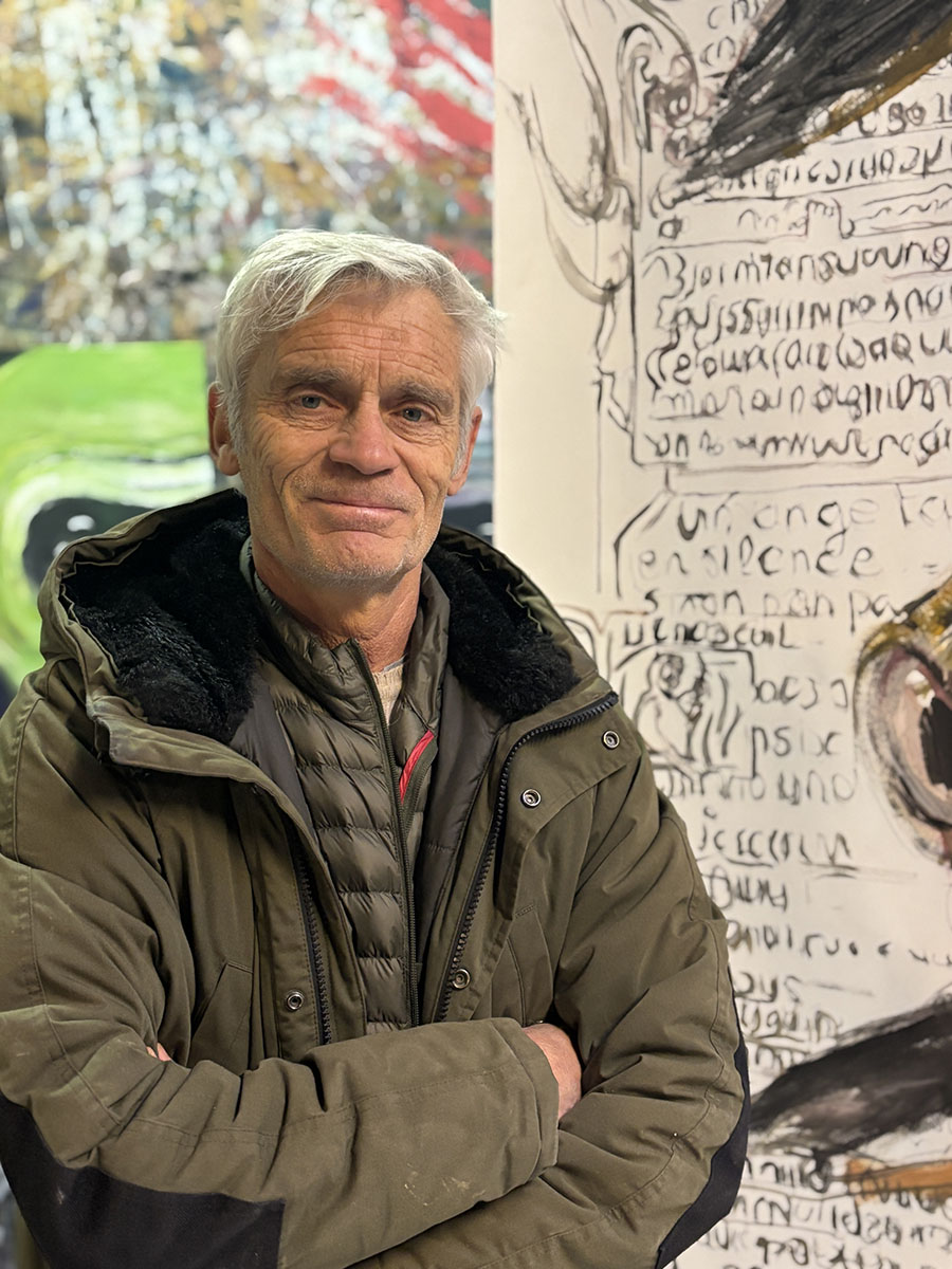 Autodidacte au parcours atypique, il aborde la peinture comme un terrain d’exploration sensible, privilégiant les grands formats, les surfaces denses et les couleurs franches.
