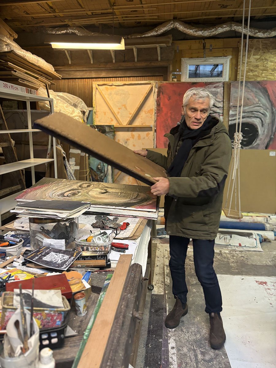 Jean-Philippe Burnel est un peintre figuratif installé à Cherbourg, en Normandie, où il développe depuis plusieurs décennies une œuvre singulière, profondément ancrée dans la matière et le geste.